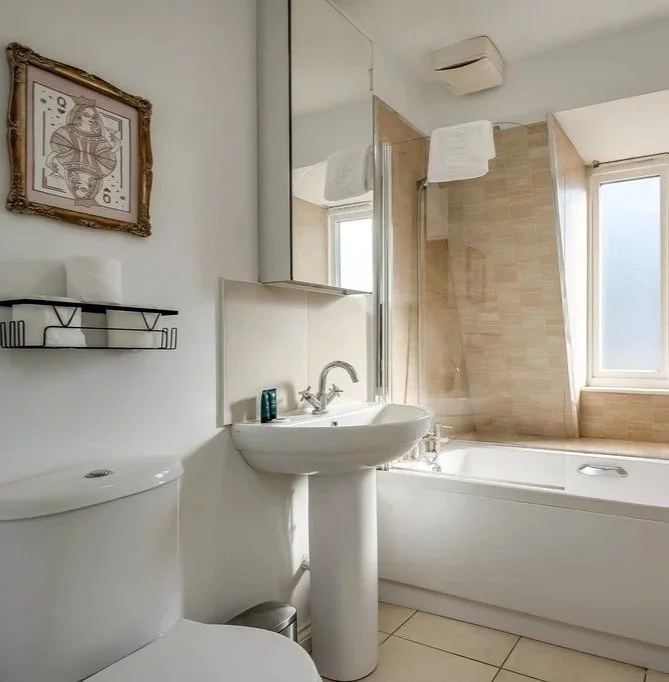 The bedroom is equipped with a large wardrobe with plenty of space to store away your belongings and the hallway cupboard to the left of the bathroom is the ideal space to store away any luggage should you wish to keep this out of the way!